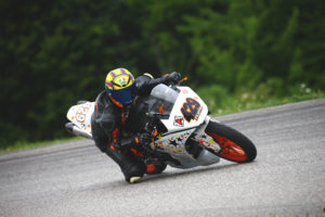 I chose a HEROIC Custom Stage I – Cow Suit at $1650, and decided to add a HEROIC Genesis Mid-section Mobility Package (remove all the leather in the mid section and replace with stretch Schoeller Kevlar) for another $250. I have a back protector and chest protector… I wanted to be able to rotate my body into the turn, and do it comfortably.
