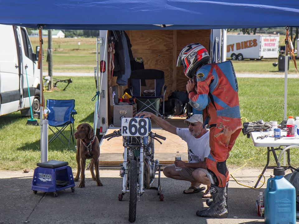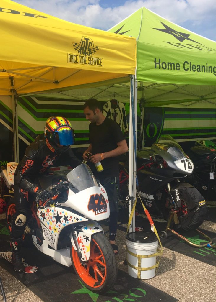 At NJMP with AHRMA, I got measured for a custom race suit by Todd at Heroic Racing Apparel.